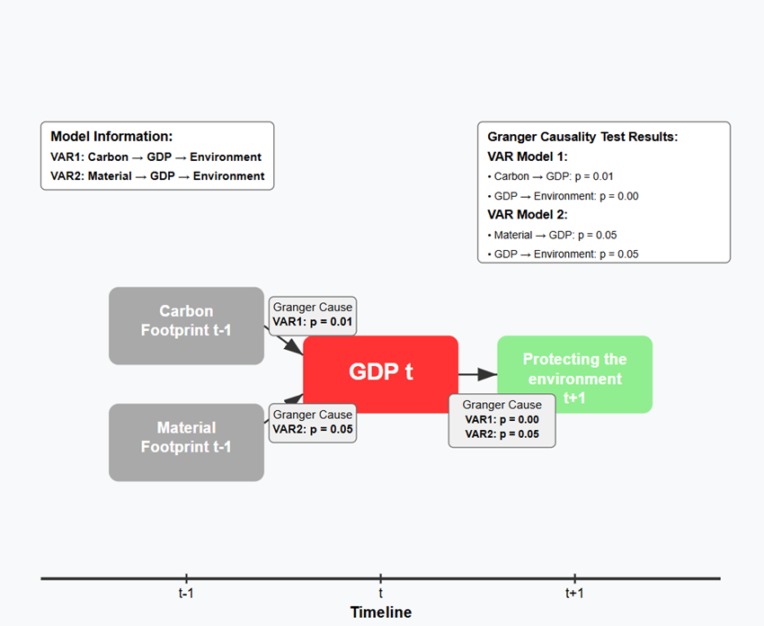 Here’s where the paradox crystallizes. While economic growth does foster environmental consciousness, it simultaneously accelerates environmental degradation. Our Vector Autoregression Analysis shows that both material footprint and carbon footprint increase substantially with GDP growth. For every 1% increase in economic expansion, material footprint grows by 1.31% and carbon emissions by 1.14%. The very engine driving environmental awareness is also the primary driver of environmental harm.